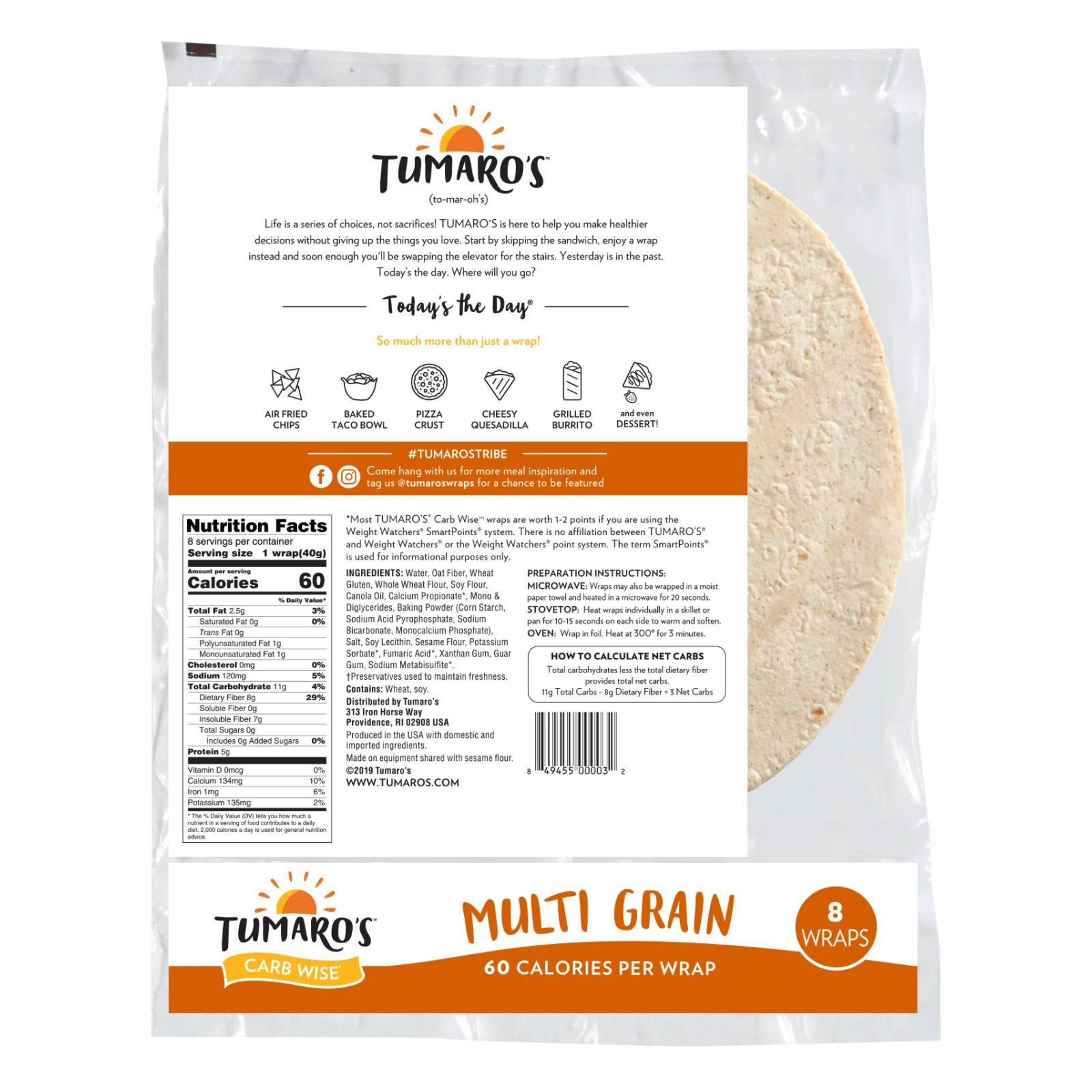 Tumaro's 8-inch Multi Grain Carb Wise Wraps - Case Of 6 - 8 Ct Tumaro's 8-inch Multi Grain Carb Wise Wraps - Case Of 6 - 8 Ct Tumaro's 8-inch Multi Grain Carb Wise Wraps - Case Of 6 - 8 Ct